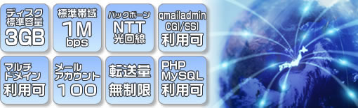 標準開放帯域 | 1Mbps (月間転送量の目安:324GByte) |